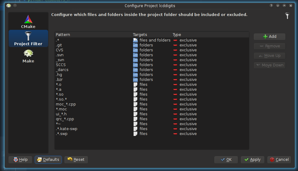Today, after a bit more than a month since I started working on it, I merged the projectfilter branches into KDevplatform/KDevelop. This is a generic configuration interface and library which allows users to customize which folders/files KDevelop includes in a project.